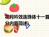 大家好,今天小方来说说一篇关于花月吟效连珠体十一首11,关于花月吟效连珠体十一首11部分内容简述的文章,那么现在就为大家来简单介绍下, 浏览全文>>