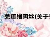 大家好,今天小方来说说一篇关于芫爆猪肉丝,关于芫爆猪肉丝部分内容简述的文章,那么现在就为大家来简单介绍下,希望对各位小伙伴们有所帮 浏览全文>>
