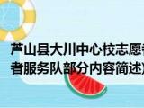 大家好,今天小方来说说一篇关于芦山县大川中心校志愿者服务队,关于芦山县大川中心校志愿者服务队部分内容简述的文章,那么现在就为大家来 浏览全文>>
