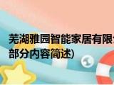 大家好,今天小方来说说一篇关于芜湖雅园智能家居有限公司,关于芜湖雅园智能家居有限公司部分内容简述的文章,那么现在就为大家来简单介绍 浏览全文>>
