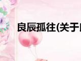 大家好,今天小方来说说一篇关于良辰孤往,关于良辰孤往部分内容简述的文章,那么现在就为大家来简单介绍下,希望对各位小伙伴们有所帮助。 浏览全文>>
