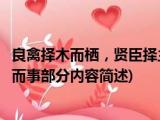 大家好,今天小方来说说一篇关于良禽择木而栖,贤臣择主而事,关于良禽择木而栖,贤臣择主而事部分内容简述的文章,那么现在就为大家来简单 浏览全文>>