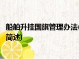大家好,今天小方来说说一篇关于船舶升挂国旗管理办法,关于船舶升挂国旗管理办法部分内容简述的文章,那么现在就为大家来简单介绍下,希望 浏览全文>>
