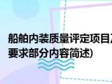 大家好,今天小方来说说一篇关于船舶内装质量评定项目及要求,关于船舶内装质量评定项目及要求部分内容简述的文章,那么现在就为大家来简单 浏览全文>>