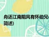 大家好,今天小方来说说一篇关于舟还江南阻风有怀伯兄,关于舟还江南阻风有怀伯兄部分内容简述的文章,那么现在就为大家来简单介绍下,希望 浏览全文>>
