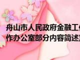 大家好,今天小方来说说一篇关于舟山市人民政府金融工作办公室,关于舟山市人民政府金融工作办公室部分内容简述的文章,那么现在就为大家来 浏览全文>>