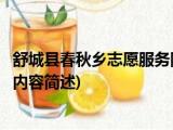 大家好,今天小方来说说一篇关于舒城县春秋乡志愿服务队,关于舒城县春秋乡志愿服务队部分内容简述的文章,那么现在就为大家来简单介绍下, 浏览全文>>