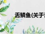 大家好,今天小方来说说一篇关于舌鳞鱼,关于舌鳞鱼部分内容简述的文章,那么现在就为大家来简单介绍下,希望对各位小伙伴们有所帮助。 1、 浏览全文>>