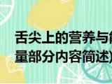 大家好,今天小方来说说一篇关于舌尖上的营养与能量,关于舌尖上的营养与能量部分内容简述的文章,那么现在就为大家来简单介绍下,希望对各 浏览全文>>