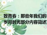 大家好,今天小方来说说一篇关于致青春:那些年我们的岁月时光,关于致青春:那些年我们的岁月时光部分内容简述的文章,那么现在就为大家来 浏览全文>>