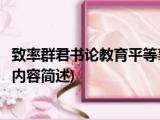 大家好,今天小方来说说一篇关于致率群君书论教育平等事,关于致率群君书论教育平等事部分内容简述的文章,那么现在就为大家来简单介绍下, 浏览全文>>
