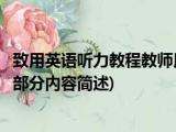 大家好,今天小方来说说一篇关于致用英语听力教程教师用书,关于致用英语听力教程教师用书部分内容简述的文章,那么现在就为大家来简单介绍 浏览全文>>