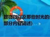 大家好,今天小方来说说一篇关于致微微以及那些时光的记忆,关于致微微以及那些时光的记忆部分内容简述的文章,那么现在就为大家来简单介绍 浏览全文>>