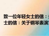 大家好,今天小方来说说一篇关于致一位年轻女士的信:关于钢琴表演艺术,关于致一位年轻女士的信:关于钢琴表演艺术部分内容简述的文章,那 浏览全文>>