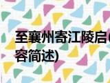 大家好,今天小方来说说一篇关于至襄州寄江陵启,关于至襄州寄江陵启部分内容简述的文章,那么现在就为大家来简单介绍下,希望对各位小伙伴 浏览全文>>