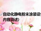 大家好,今天小方来说说一篇关于自动化静电粉末涂装设备,关于自动化静电粉末涂装设备部分内容简述的文章,那么现在就为大家来简单介绍下, 浏览全文>>