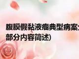 大家好,今天小方来说说一篇关于腹膜假黏液瘤典型病案分析,关于腹膜假黏液瘤典型病案分析部分内容简述的文章,那么现在就为大家来简单介绍 浏览全文>>
