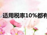 大家好,小活来为大家解答以上的问题。适用税率10%都有哪些,10 税率适用范围这个很多人还不知道,现在让我们一起来看看吧!1、适用10%增值 浏览全文>>