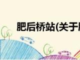大家好,今天小方来说说一篇关于肥后桥站,关于肥后桥站部分内容简述的文章,那么现在就为大家来简单介绍下,希望对各位小伙伴们有所帮助。 浏览全文>>