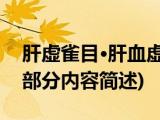 大家好,今天小方来说说一篇关于肝虚雀目·肝血虚证,关于肝虚雀目·肝血虚证部分内容简述的文章,那么现在就为大家来简单介绍下,希望对各 浏览全文>>
