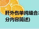 大家好,今天小方来说说一篇关于肝外伤单纯缝合术,关于肝外伤单纯缝合术部分内容简述的文章,那么现在就为大家来简单介绍下,希望对各位小 浏览全文>>