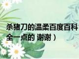 大家好,小活来为大家解答以上的问题。杀猪刀的温柔百度百科,杀猪刀的温柔作品集要全部的 最好全一点的 谢谢这个很多人还不知道,现在让我 浏览全文>>