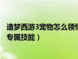 大家好,小活来为大家解答以上的问题。造梦西游3宠物怎么领悟专属技能,造梦西游3宠物怎么刷出专属技能这个很多人还不知道,现在让我们一起来 浏览全文>>