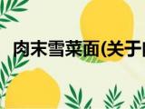大家好,今天小方来说说一篇关于肉末雪菜面,关于肉末雪菜面部分内容简述的文章,那么现在就为大家来简单介绍下,希望对各位小伙伴们有所帮 浏览全文>>