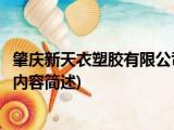 大家好,今天小方来说说一篇关于肇庆新天衣塑胶有限公司,关于肇庆新天衣塑胶有限公司部分内容简述的文章,那么现在就为大家来简单介绍下, 浏览全文>>