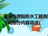 大家好,今天小方来说说一篇关于肇庆市唐阳防水工程有限公司,关于肇庆市唐阳防水工程有限公司部分内容简述的文章,那么现在就为大家来简单 浏览全文>>