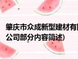 大家好,今天小方来说说一篇关于肇庆市众成新型建材有限公司,关于肇庆市众成新型建材有限公司部分内容简述的文章,那么现在就为大家来简单 浏览全文>>