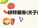 大家好,今天小方来说说一篇关于肆释藏春,关于肆释藏春部分内容简述的文章,那么现在就为大家来简单介绍下,希望对各位小伙伴们有所帮助。 浏览全文>>