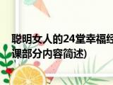 大家好,今天小方来说说一篇关于聪明女人的24堂幸福经营课,关于聪明女人的24堂幸福经营课部分内容简述的文章,那么现在就为大家来简单介绍 浏览全文>>