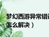 大家好,小活来为大家解答以上的问题。梦幻西游异常错误怎么解决,梦幻西游error怎么解决这个很多人还不知道,现在让我们一起来看看吧!1、楼 浏览全文>>