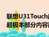 大家好,今天小方来说说一篇关于联想U31Touch超极本,关于联想U31Touch超极本部分内容简述的文章,那么现在就为大家来简单介绍下,希望对各 浏览全文>>