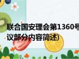 大家好,今天小方来说说一篇关于联合国安理会第1360号决议,关于联合国安理会第1360号决议部分内容简述的文章,那么现在就为大家来简单介绍 浏览全文>>