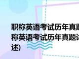 大家好,今天小方来说说一篇关于职称英语等级考试专项及综合训练,关于职称英语等级考试专项及综合训练部分内容简述的文章,那么现在就为大 浏览全文>>