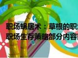 大家好,今天小方来说说一篇关于职场蜗居术:草根的职场生存策略,关于职场蜗居术:草根的职场生存策略部分内容简述的文章,那么现在就为大 浏览全文>>