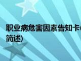 大家好,今天小方来说说一篇关于职业病危害因素告知卡,关于职业病危害因素告知卡部分内容简述的文章,那么现在就为大家来简单介绍下,希望 浏览全文>>