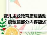 大家好,今天小方来说说一篇关于聋儿主题教育康复活动:启蒙篇,关于聋儿主题教育康复活动:启蒙篇部分内容简述的文章,那么现在就为大家来 浏览全文>>