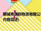 大家好,今天小方来说说一篇关于聊城市唐创物资有限公司,关于聊城市唐创物资有限公司部分内容简述的文章,那么现在就为大家来简单介绍下, 浏览全文>>