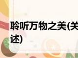 大家好,今天小方来说说一篇关于聆听万物之美,关于聆听万物之美部分内容简述的文章,那么现在就为大家来简单介绍下,希望对各位小伙伴们有 浏览全文>>