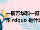 大家好,小活来为大家解答以上的问题。一揽芳华和一览芳华的区别,ldquo 一揽芳华 rdquo 是什么意思这个很多人还不知道,现在让我们一起来 浏览全文>>