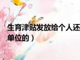 大家好,小活来为大家解答以上的问题。生育津贴发放给个人还是单位,生育津贴是给个人的还是给单位的这个很多人还不知道,现在让我们一起来看 浏览全文>>