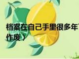 大家好,小活来为大家解答以上的问题。档案在自己手里很多年了,还给存吗,档案在自己手里多久会作废这个很多人还不知道,现在让我们一起来看 浏览全文>>