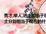 大家好,小活来为大家解答以上的问题。秀才,举人,进士相当于现在的什么学历,当年的秀才 举人 进士分别相当于现在的什么学历这个很多人还 浏览全文>>