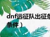 大家好,小活来为大家解答以上的问题。dnf远征队出征条件有哪些,dnf远征队出征条件这个很多人还不知道,现在让我们一起来看看吧!1、DNF远征 浏览全文>>