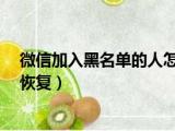 大家好,小活来为大家解答以上的问题。微信加入黑名单的人怎么恢复?,微信加入黑名单的人怎么恢复这个很多人还不知道,现在让我们一起来看看 浏览全文>>