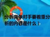 大家好,小活来为大家解答以上的问题。分析竞争对手要着重分析竞争对手的什么内容,竞争对手分析的内容是什么这个很多人还不知道,现在让我们 浏览全文>>