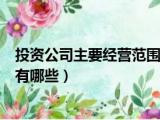大家好,小活来为大家解答以上的问题。投资公司主要经营范围有哪些内容,投资公司主要经营范围有哪些这个很多人还不知道,现在让我们一起来看 浏览全文>>